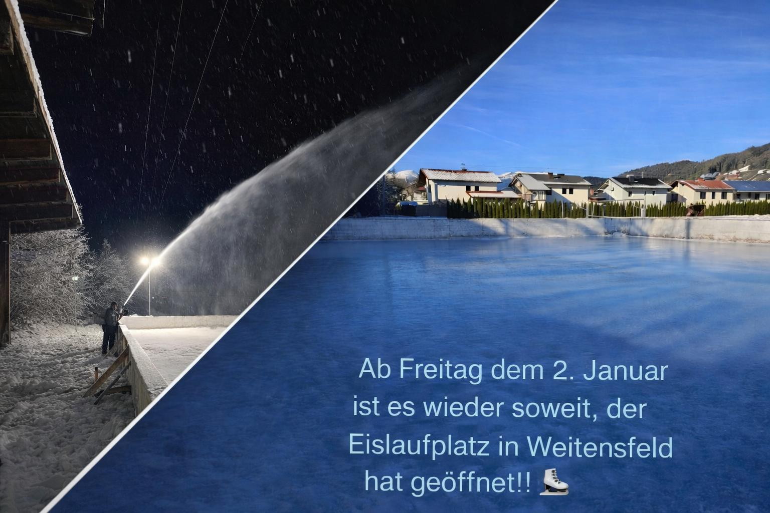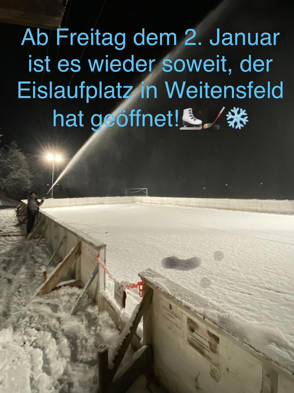 Ein großes Dankeschön an unsere Eismeister, Dank ihrem Einsatz steht dem Eislauf Vergnügen pünktlich zum Jahresbeginn nichts mehr im Wege! Der Eislaufplatz ist ab morgen (02.01.2026) geöffnet