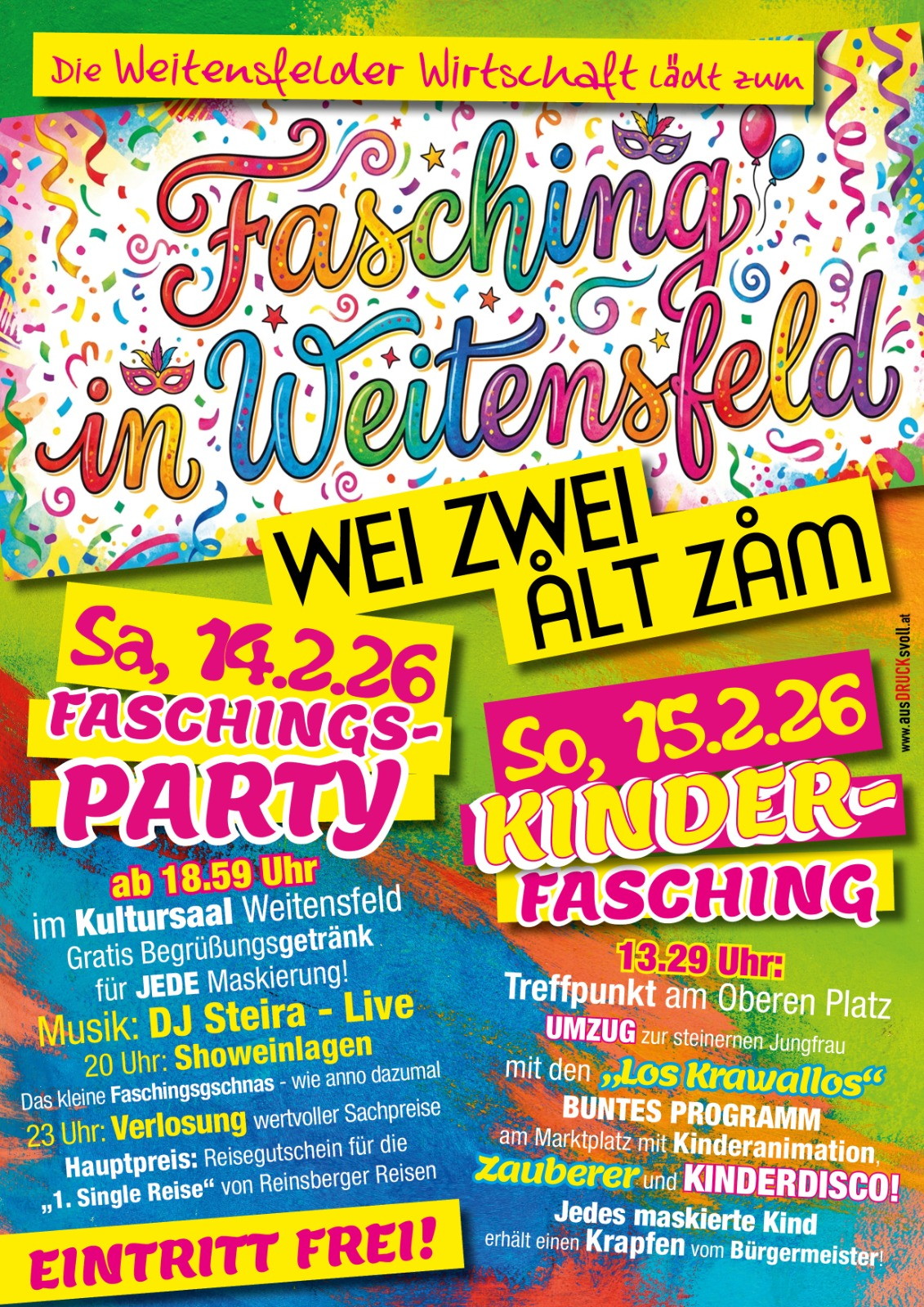 Faschingsparty im Kultursaal GH Kogleck / Verlosung/ Showeinlage/ DJ / Weitensfelder Wirtschaft