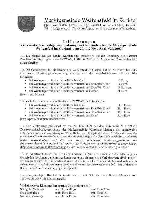 Verordnung – Zweitwohnsitzabgabe