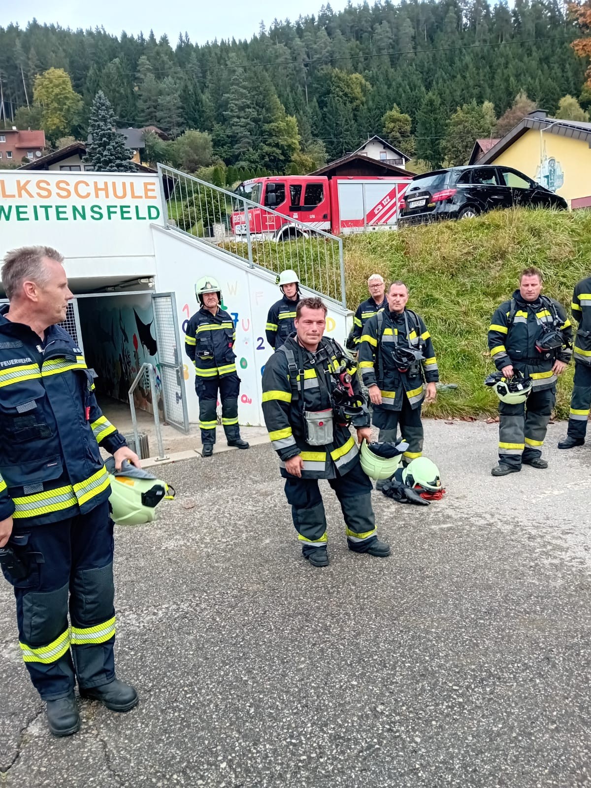Am 09. 10. 2025 fand an der Volksschule Weitensfeld die alljährliche Räumungsübung in Zusammenarbeit mit der Freiwilligen Feuerwehr Weitensfeld unter der Leitung von Feuerwehrkommandanten Herrn Mag. Christian Lattacher statt.